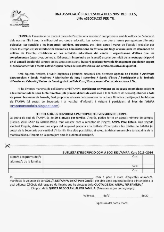 NOTA: També pots aconseguir estes butlletes a consergeria de l’Edifici de Primària.