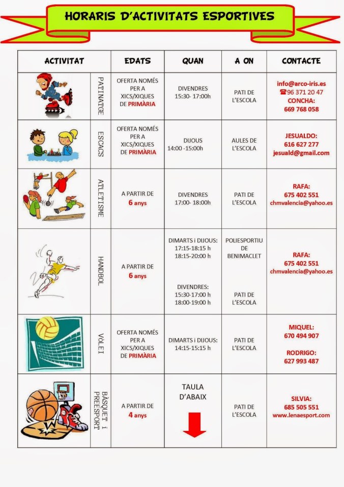 Com sempre, una vegada més, l’Ampa és mobilitza per a oferir de nou a tots els alumnes les ACTIVITATS ESPORTIVES què té l’escola com activitats extraescolars, és a dir, fora de l’horari lectiu.