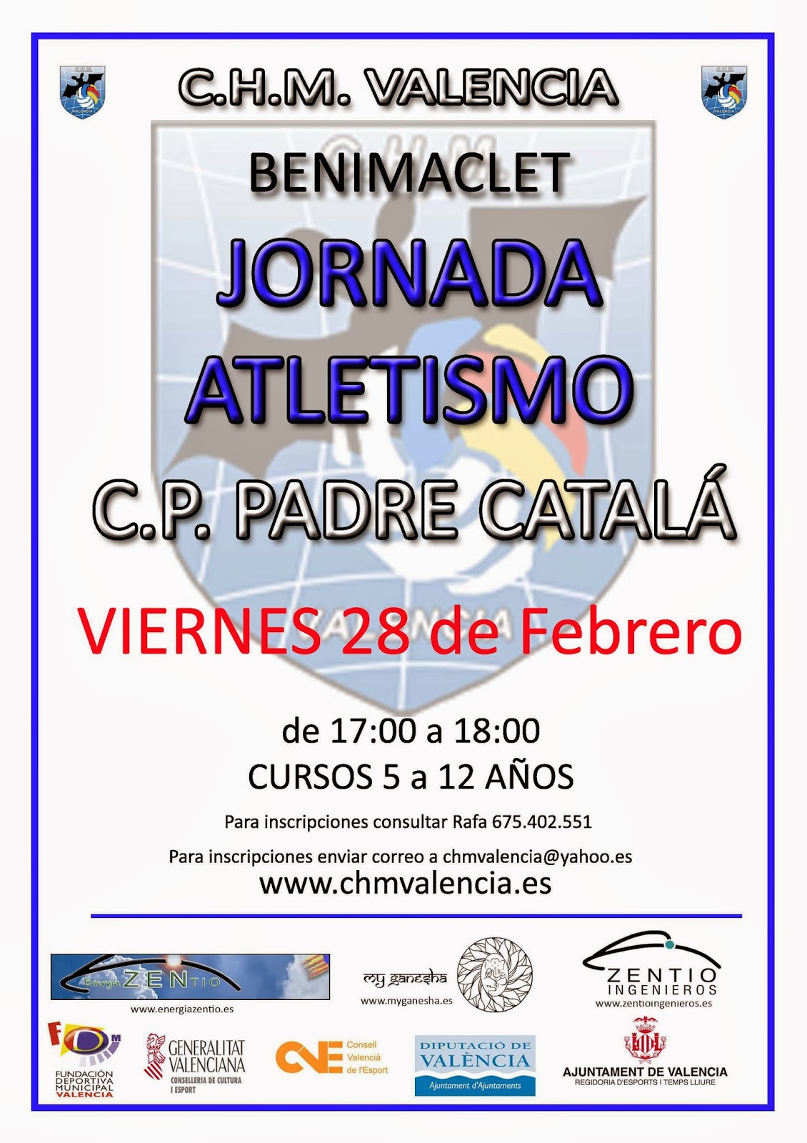 CAMPUS ATLETISME 27 febrer, 201423 Octubre, 2015 / AFA Pare Català Benimaclet, a 27de febrer de 2014L’AMPA de l’escola informaHem rebut la següent informació: Comparte: Feu clic per compartir a X (S'obre en una nova finestra) X Feu clic per compartir al Facebook (S'obre en una nova finestra) Facebook M'agrada S'està carregant...