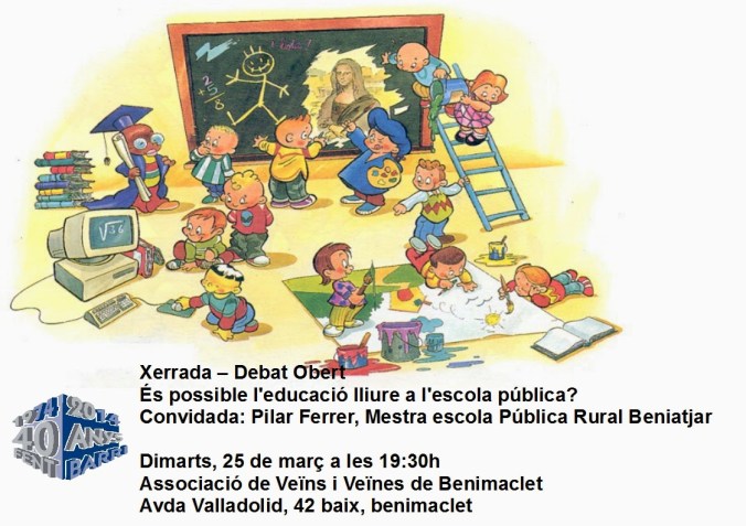 Xerrada debat obert és possible leducació lliure a lescola publica 26 Març, 201423 Octubre, 2015 / AFA Pare Català Benimaclet, a 26 de març de 2014L’AMPA de l’escola informa Hem rebut de la AA. de VV. de Benimaclet la següenta informació: Comparte: Feu clic per compartir a X (S'obre en una nova finestra) X Feu clic per compartir al Facebook (S'obre en una nova finestra) Facebook M'agrada S'està carregant...