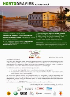 Exposició Hortografies al Pare Català 26 gener, 201523 Octubre, 2015 / AFA Pare Català Vos recordem que l’exposició Hortografies estarà al Pare Català fins el dia 12 de març de dilluns a dijous de 17:00 a 18:30. Us animem a visitar-la si encara no ho heu fet i vos demanem que feu difusió al barri perquè paga la pena. Comparte: Feu clic per compartir a X (S'obre en una nova finestra) X Feu clic per compartir al Facebook (S'obre en una nova finestra) Facebook M'agrada S'està carregant...