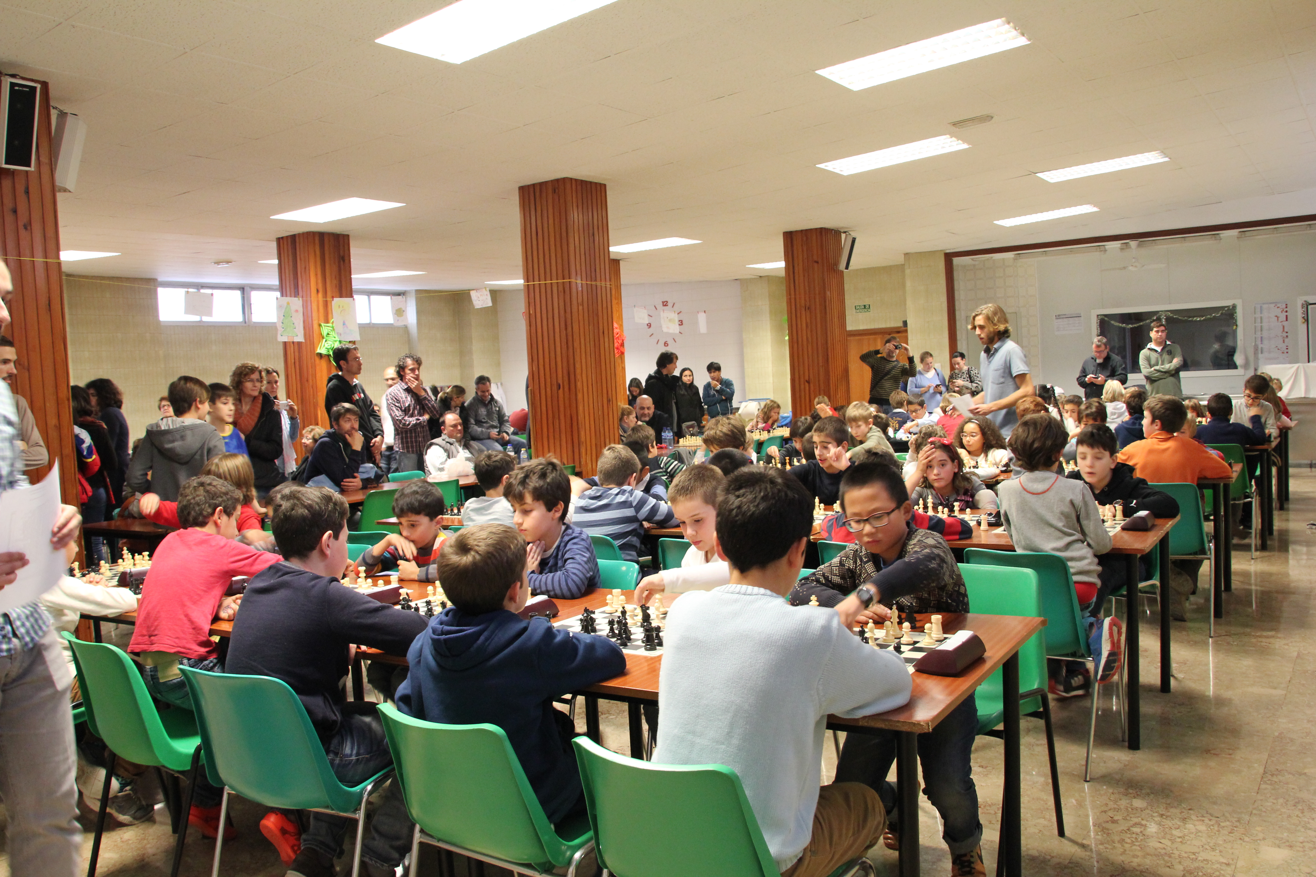 Imagineu, eren les 10:15 hores del dissabte , amb una gelor matinera acceptable i amb cara de “m’acabe d’alçar i estic cansat de tota la setmana”, quan començaren a arribar xiquets i xiquetes de molts col·legis: La Purísima, El Claret, Max Aub, Teresianes, El Pilar, Carles Salvador, San Roque i PARE CATALÀ, també gent del Club d’Escacs Benimaclet. Vora 68 participants es reptaren entre ells a 6 partides, més emocionant impossible.