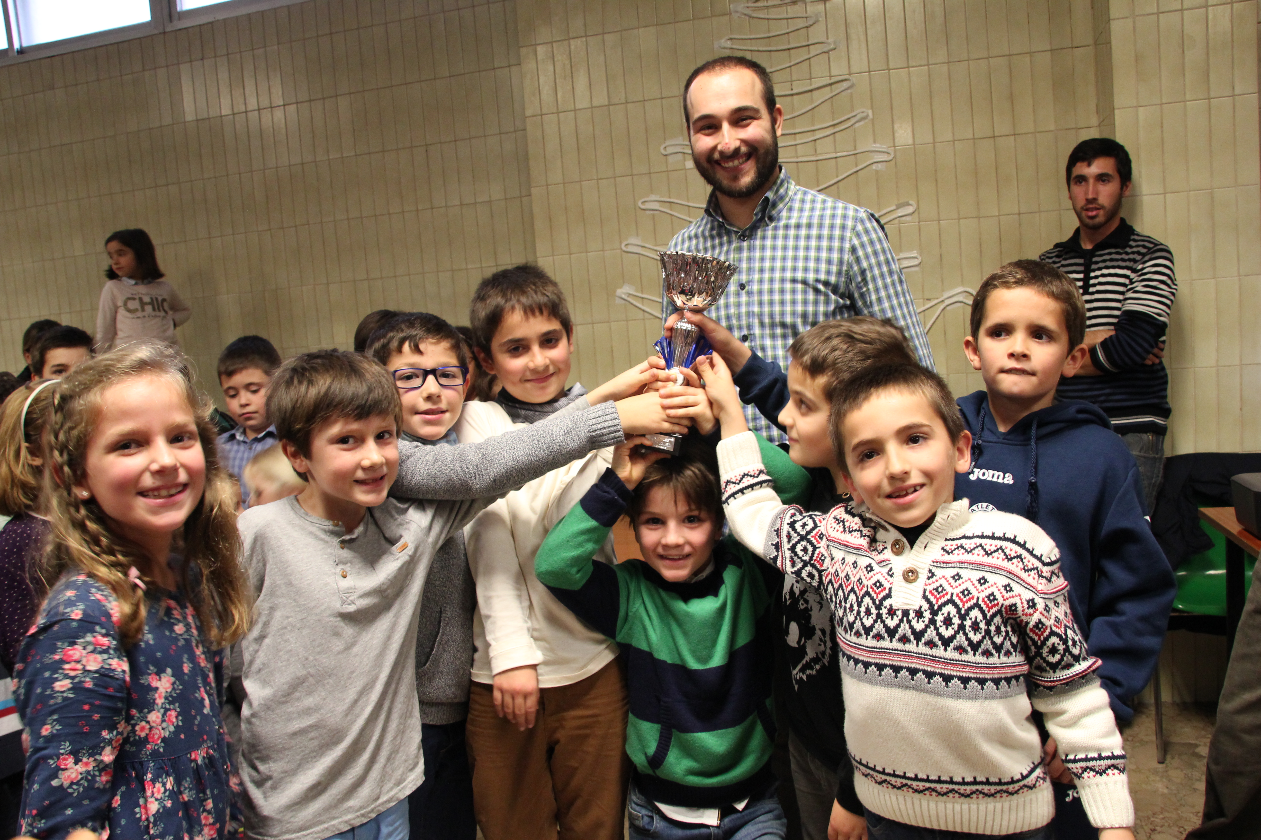 Bé, resumint, un matí molt intens on cada victòria es transformava en un somriure, una abraçada als companys, als familiars, etc… i on cada derrota feia que el suport d’uns als altres fóra fonamental per alçar el cap i afrontar la següent partida amb il·lusió, quatre hores intenses de 100% escacs.