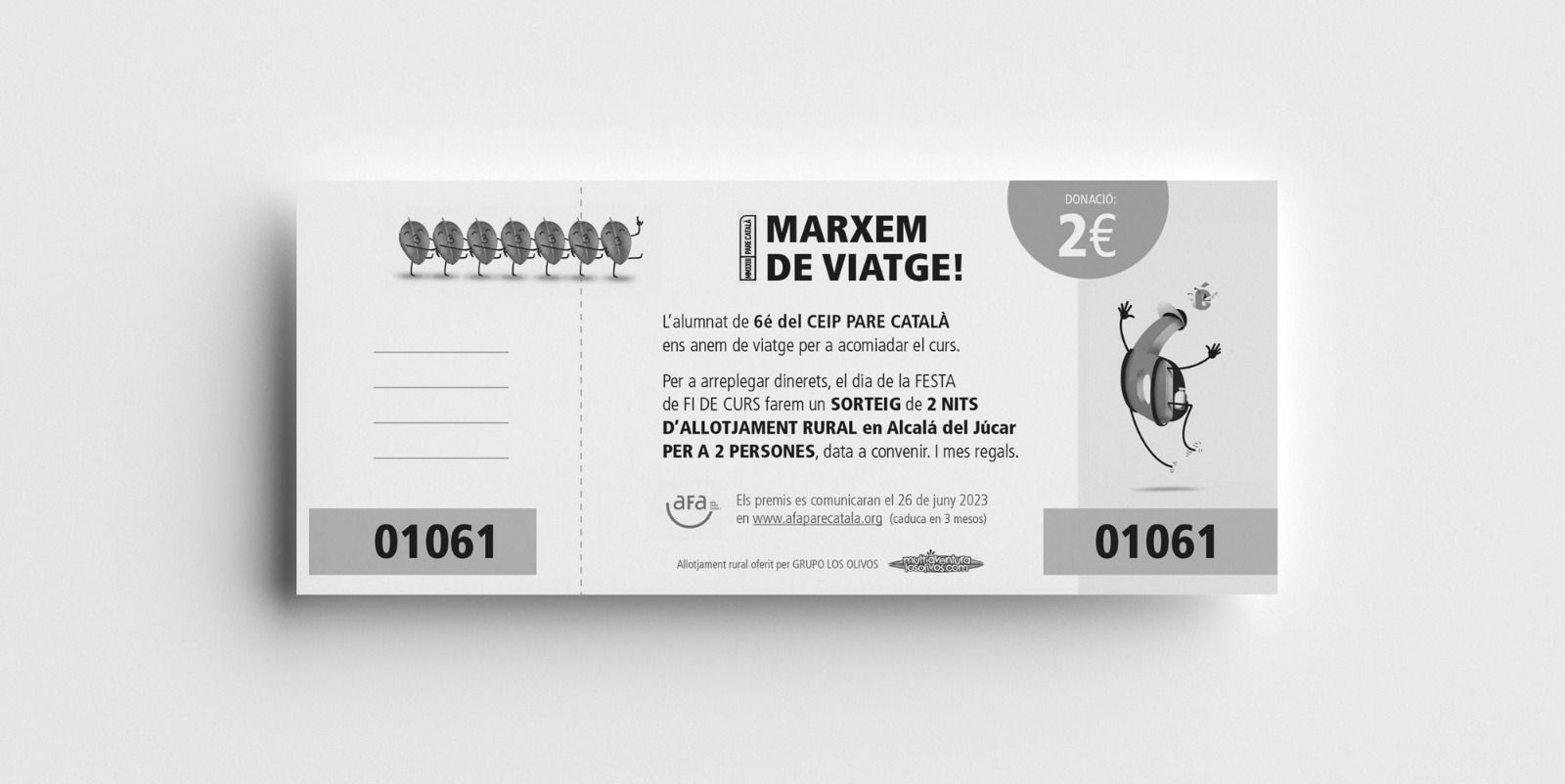Ja tenim família guanyadora de la rifa de 6è curs! 26 Juny, 20232 Octubre, 2023 / AFA Pare Català Atenció, l’AFA informa 📣!! La paperta premiada al sorteig de la festa de fi de curs del passat 16 de juny va ser: 1061 🎉Enhorabona!!! 🎉 El premi de “Allotjament per a dues persones a Alcalà del Júcar” es va entregar a la familia guanyadora. Comparte: Feu clic per compartir a X (S'obre en una nova finestra) X Feu clic per compartir al Facebook (S'obre en una nova finestra) Facebook M'agrada S'està carregant...