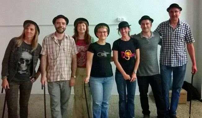Fotografia d’alguns dels membres de la Comissió després de l’acte Descobrint la màgia de Chaplin, que vam organitzar en el CIM de Benimaclet.