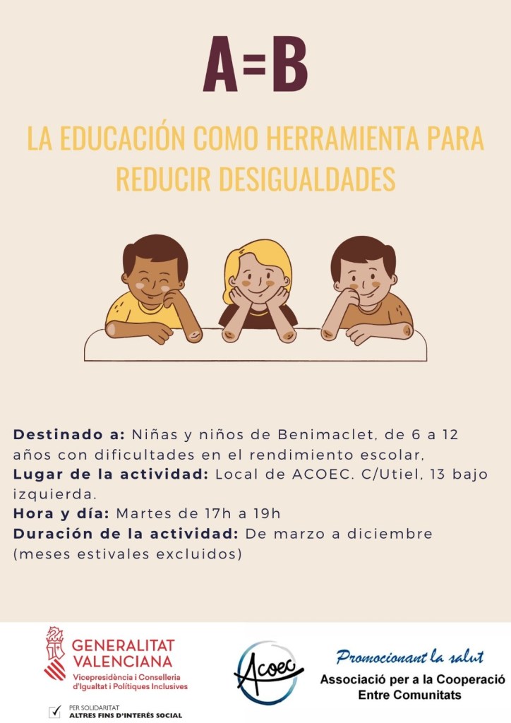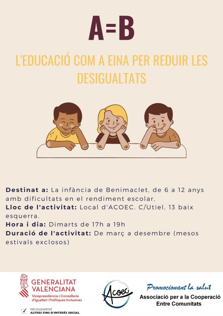 ACOEC és una entitat del sector de l’acció social situada en el barri de Benimaclet, integrada en les accions comunitàries de la zona i mantenint un contacte en xarxa associatiu amb diverses entitats de la ciutat i amb recursos públics. Es compta amb l’espai del local situat al Carrer Utiel 13 de Benimaclet, al costat de la plaça per a dur a terme les activitats programades.
