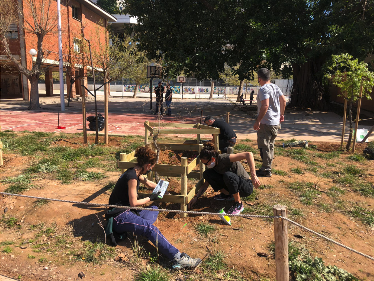 En una diada organitzada per la comissió d’infraestructures de l’AFA, el passat dissabte 13 de març, famílies del CEIP Pare Català plantaren al pati flora singular produïda als vivers del Centre d’Investigació i Experimentació Forestal (CIEF). A les imatges podeu trobar famílies plantant: Silene pseudatocion, Iberis carnosa subsp hegelmaieri (herba de neu) i Leucanthemum maestracense (marietes).