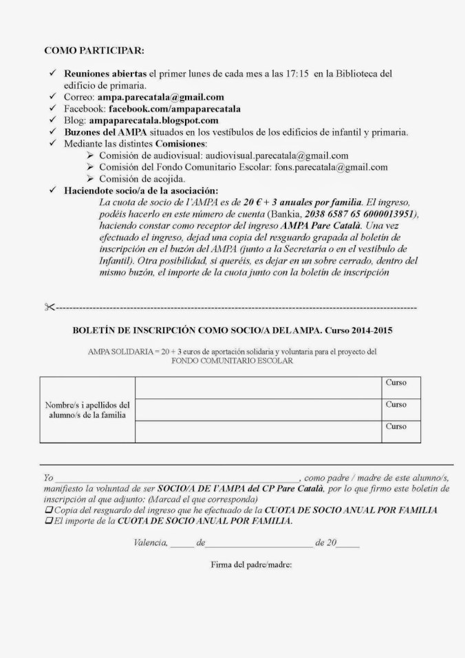Des de la nostra associació ens preocupa molt seriosament tot este problema i ens disgustaria profundament que per part de l’Administració Educativa Municipal tingueren la intenció de supressió de la 2a línia del Col·legi Municipal Benimaclet mentre es carreguen d’alumnes els dos grups habilitats del PPEC del Col·legi Públic Pare Català de Benimaclet quan ambdós grups són habilitats i no tenen garantia certa de la seua continuïtat en primària.