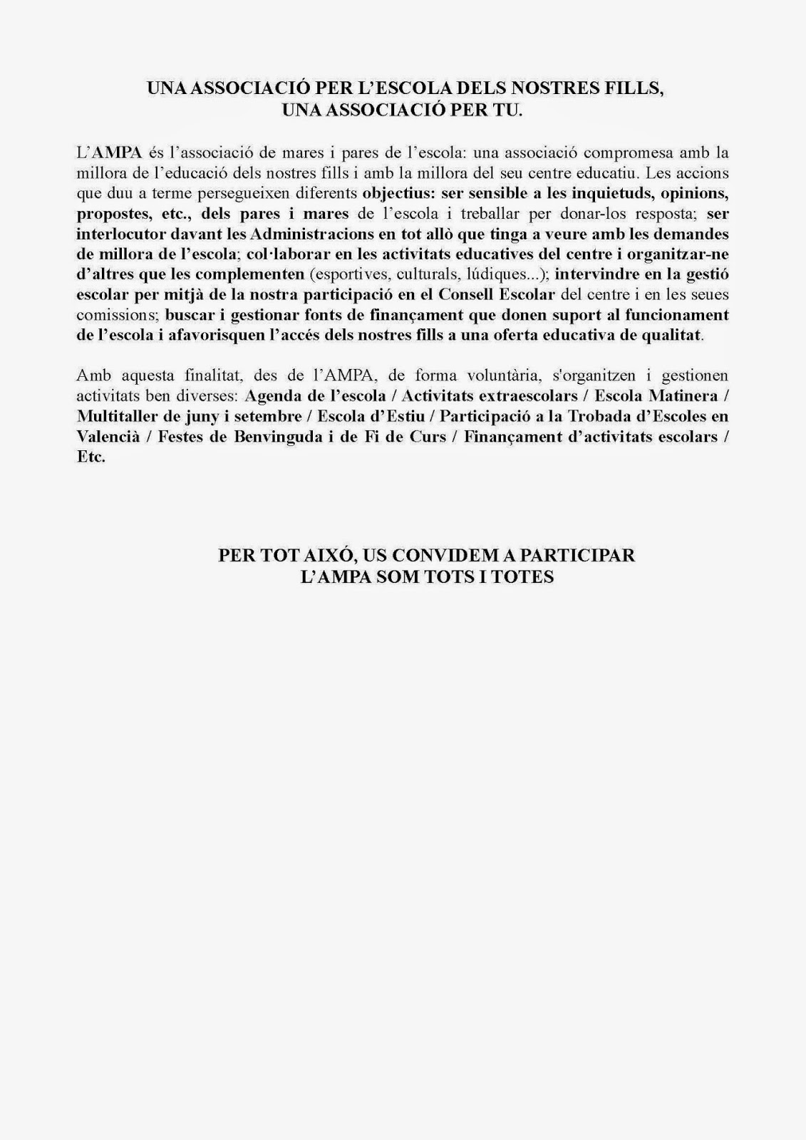 L’AMPA de l’escola informa: