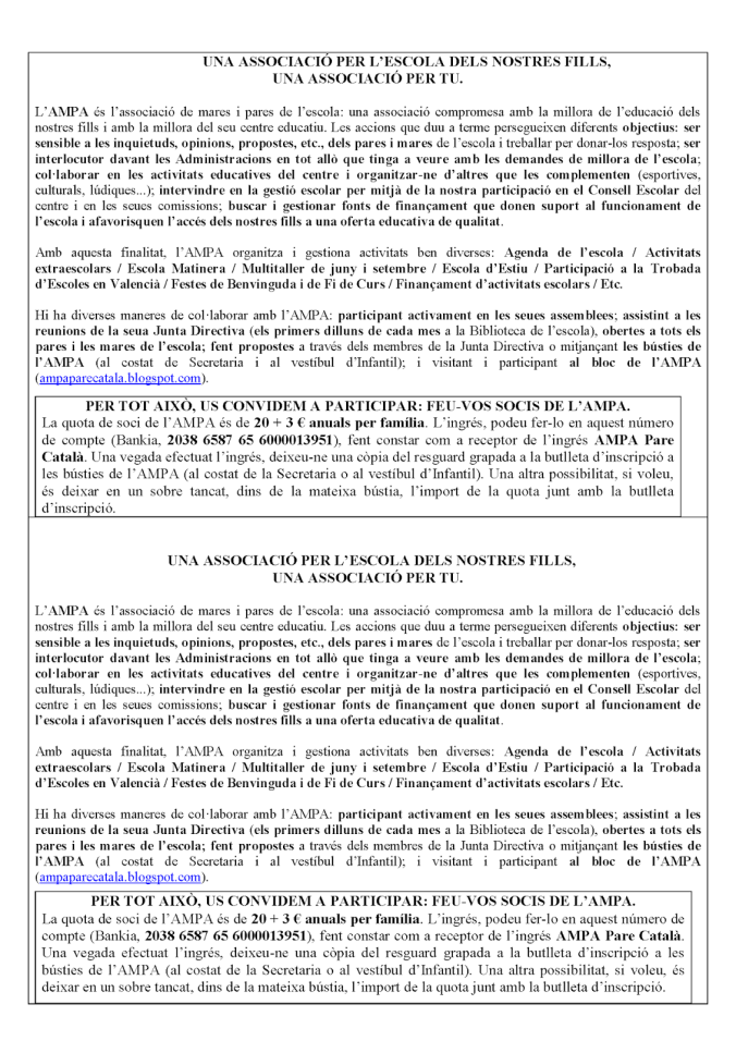 L’AMPA de l’escola informa: